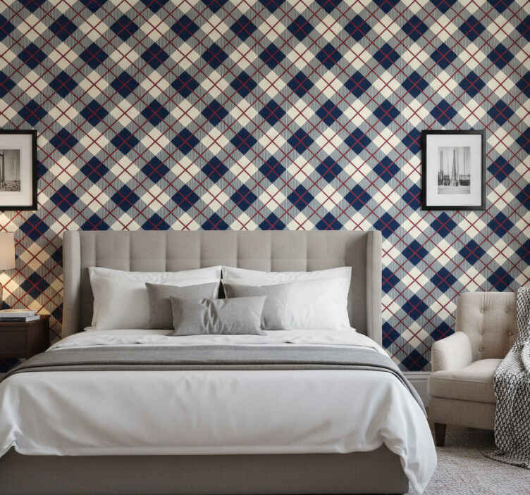 침실 벽지 클래식 스코틀랜드 체크 패턴